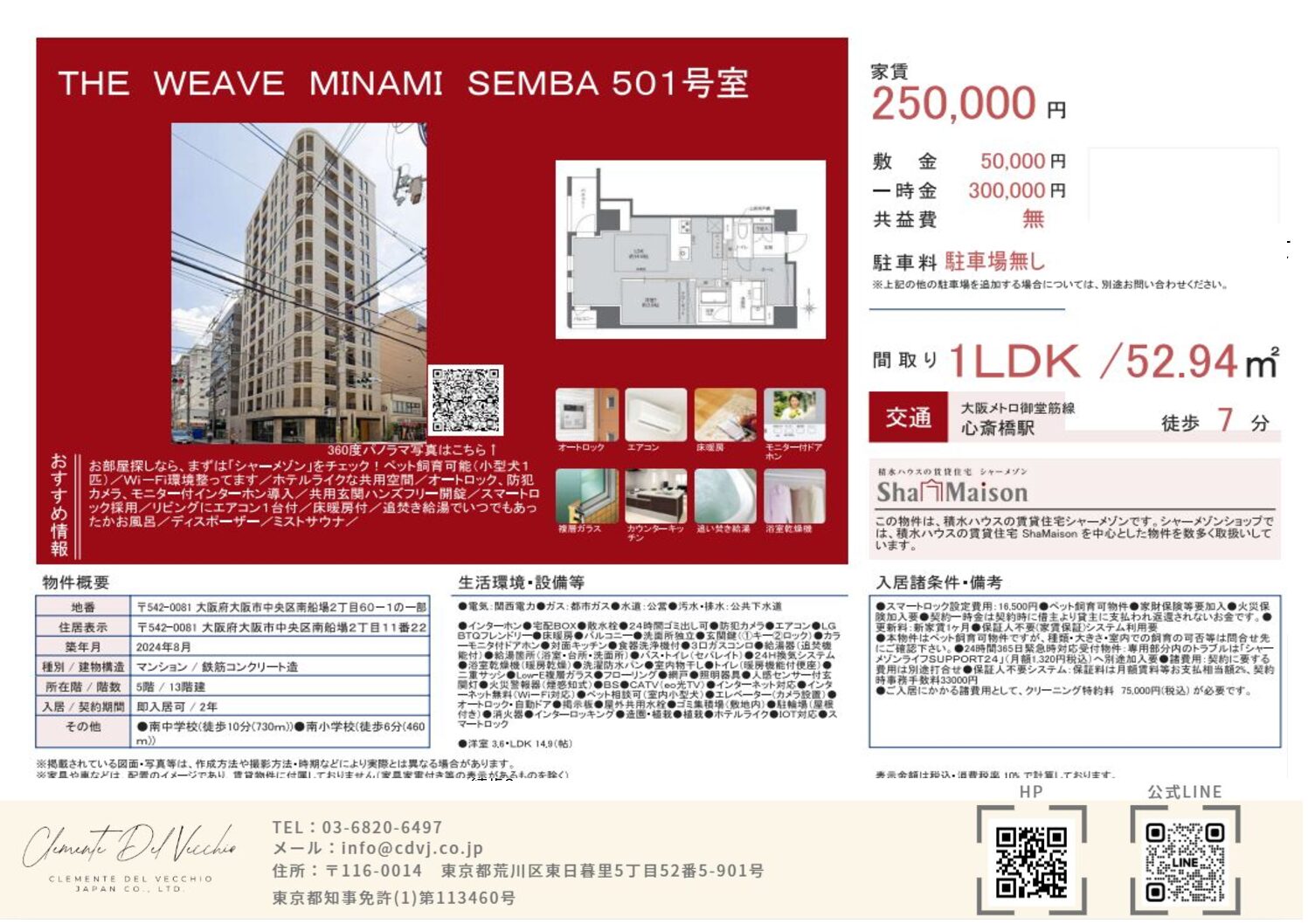| 所在地 | 大阪市中央区南船場2‐11‐22 | 敷金 / 礼金 | 5万円/ 30万円 |